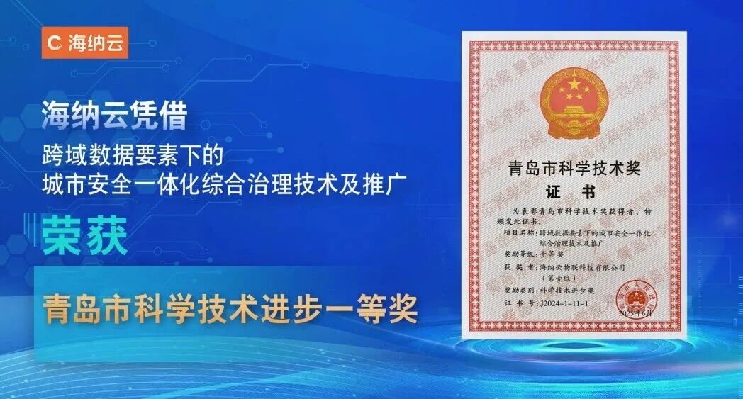 ▲海纳云获2024年度青岛市科技进步一等奖