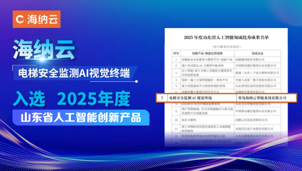 海纳云智慧电梯AI终端入选山东省人工智能优秀成果