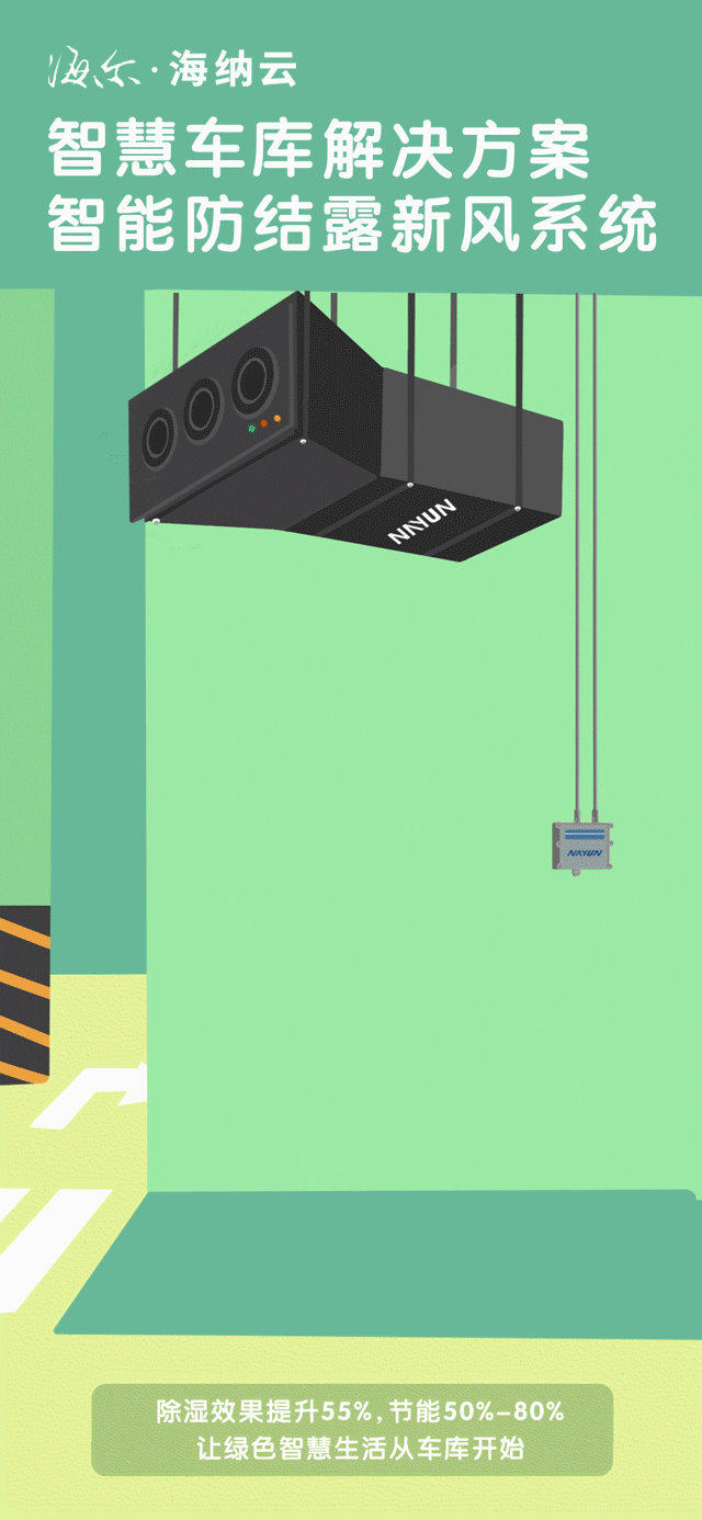 车库是归家、会客的第一个场景,也是“门面担当”。海纳云智慧车库,智能监测温湿度、汽车尾气等,自动启停防结露新风系统,除湿效果提升55%,告别水帘洞和尾气污染,让车库干燥清爽、空气清新又沁心!