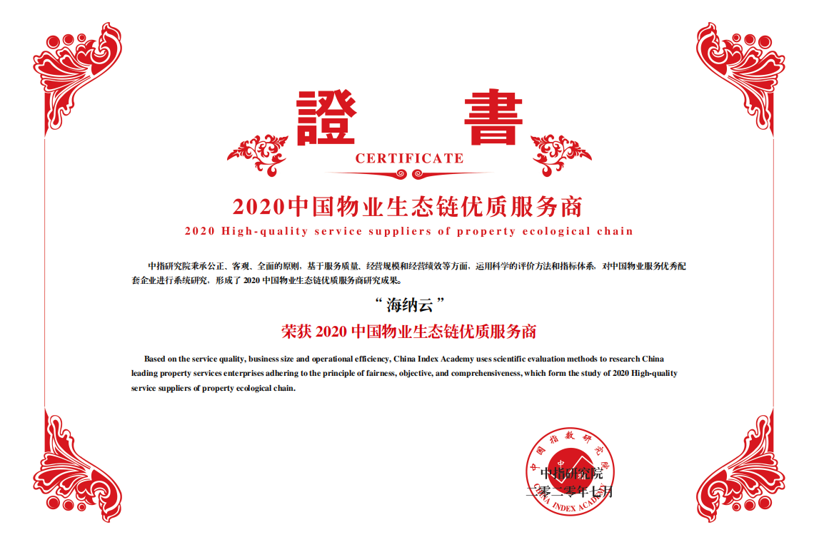 ▲海纳云获“2020中国物业生态链优质服务商”