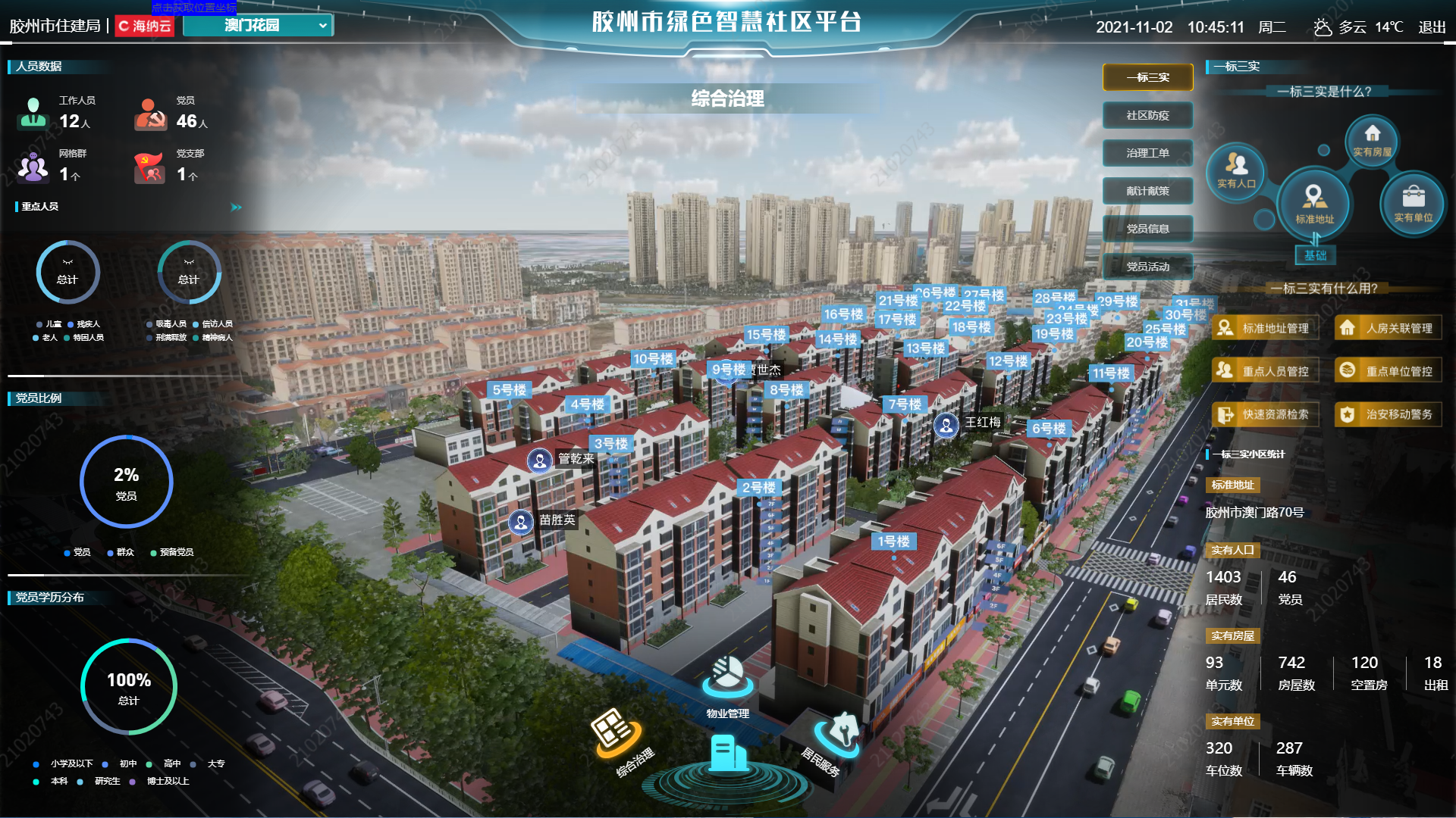 金岩:海纳云在智慧社区领域的样板同样可圈可点。其中,被山东省住建厅、全国住建部发文推广和点赞的海纳云“胶州市老旧小区改造项目”,以场景化和平台化思维为引导,将提升小区硬件环境和智慧体验有机结合,打造出“胶州顺德花园、澳门花园、方井园、浮翠园”等多个“明星”小区,通过综合治理、物业管理、居民服务三大模块,对社区内实有人口、实有房屋、流动人口、出租房屋等“人、地、物、情、事物、组织”基础信息进行管控,让社区居民切实享受到数字化改造为生活带来的便捷和安全,同时搭建政府与民众真正通畅沟通的桥梁,以“胶州模式”,打造中国老旧小区改造的青岛样板。
