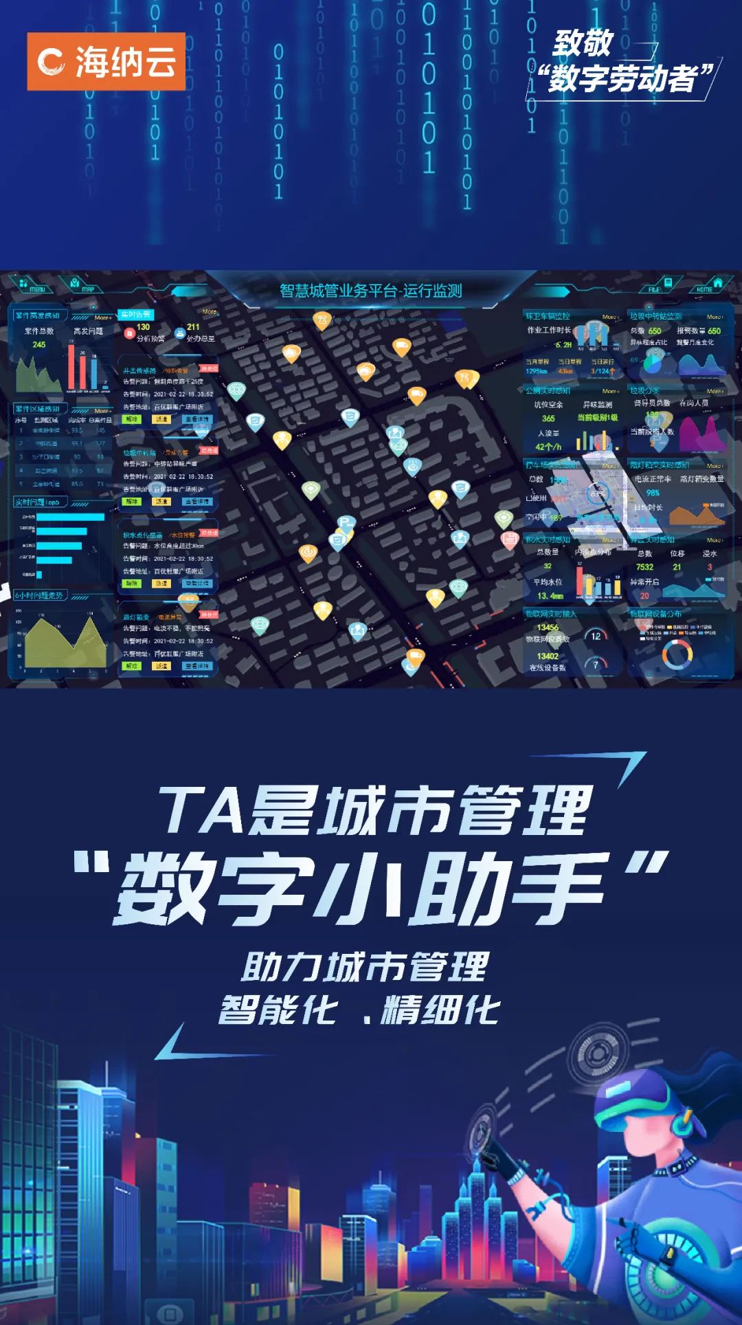 海纳云智慧城管业务平台运用物联网、大数据、AI、可视化等技术,对接并汇聚城市运行管理相关领域,构建“监察、指挥、感知、服务、分析”五位一体的城市运行管理服务平台,实现智慧环卫、垃圾分类监管、智慧公厕、智慧井盖、城市积水、智慧停车、数字化城管等系统运行数据汇聚、运行状态感知;并进行汇聚监测、大数据展现、数据分析挖掘以及跨平台指挥联动处置;对城市运行相关人、车、事、物实现全过程、全时段、全方位的管理,形成事前防范、事中控制、事后反思的全流程周期闭环,全面提升城市运行的智慧化管理水平。