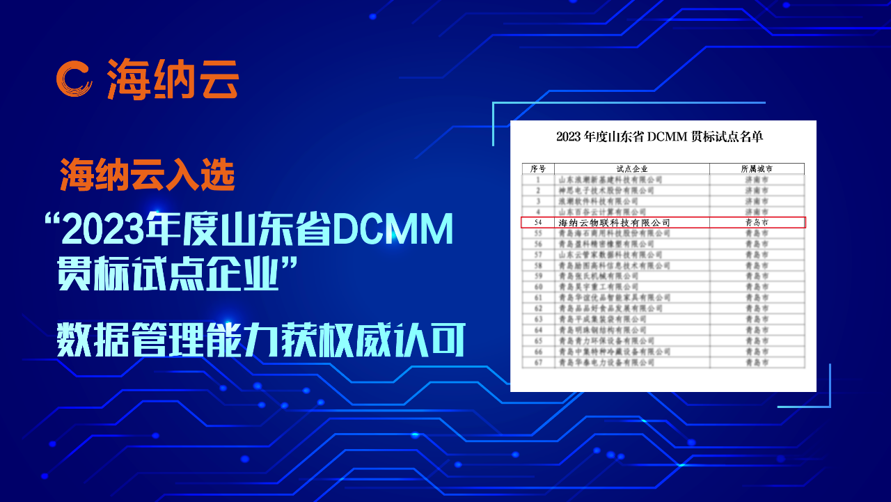 榜上有名 | 海纳云入选“2023年度山东省DCMM贯标试点企业”,数据管理能力获省工信厅认可