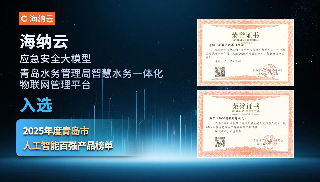 近日,2025年度青岛市人工智能产业表彰名单揭晓,海纳云凭借其技术创新实力与场景落地能力揽获多项大奖:在产品和案例层面,其自主研发的“应急安全大模型”和“青岛水务管理局智慧水务一体化物联网管理平台”入选2025年度青岛市人工智能百强产品榜单;在企业品牌层面,海纳云获2025年度青岛市人工智能大模型企业潜力奖。