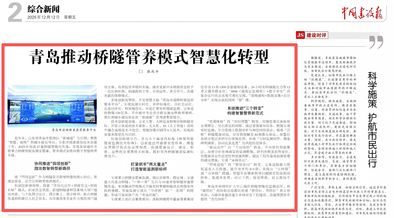 媒体聚焦|中国建设报:青岛推动桥隧管养模式智慧化转型